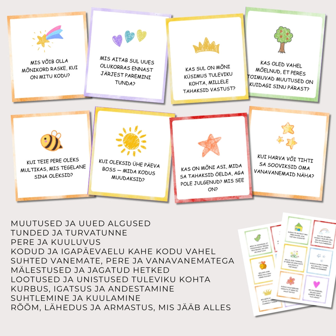 "Räägime lahkuminekust" vestluskaardid aitavad avada lapse ja täiskasvanu vahel keerulisi, kuid vajalikke vestlusi.